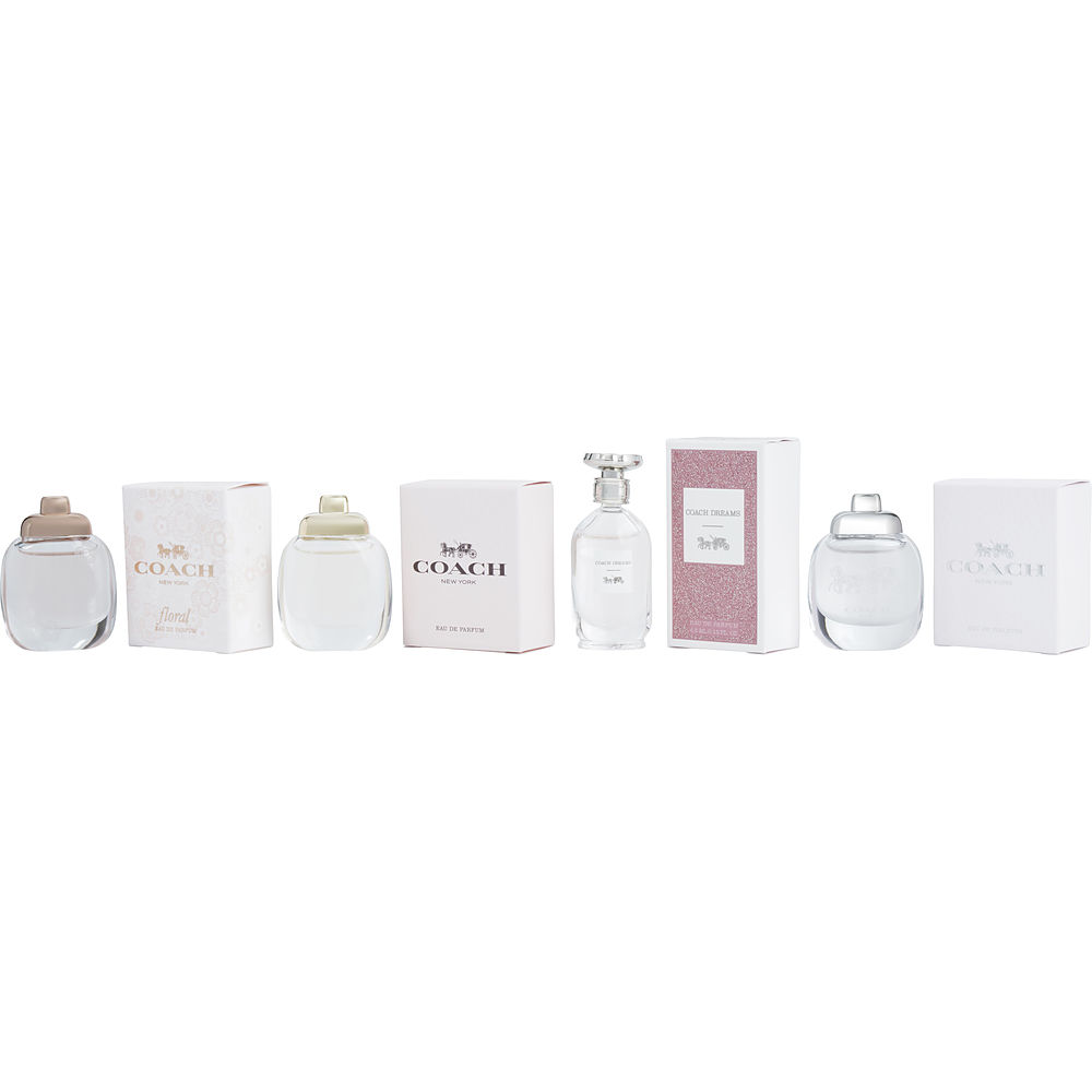 COACH VARIETY by Coach(4 PIECE MINI VARIETY WITH COACH EDT & COACH EAU DE PARFUM & COACH DREAMS & COACH FLORAL AND ALL ARE 0.15 OZ MINI) for WOMEN, produced with . COACH VARIETY by Coach was introduced in .