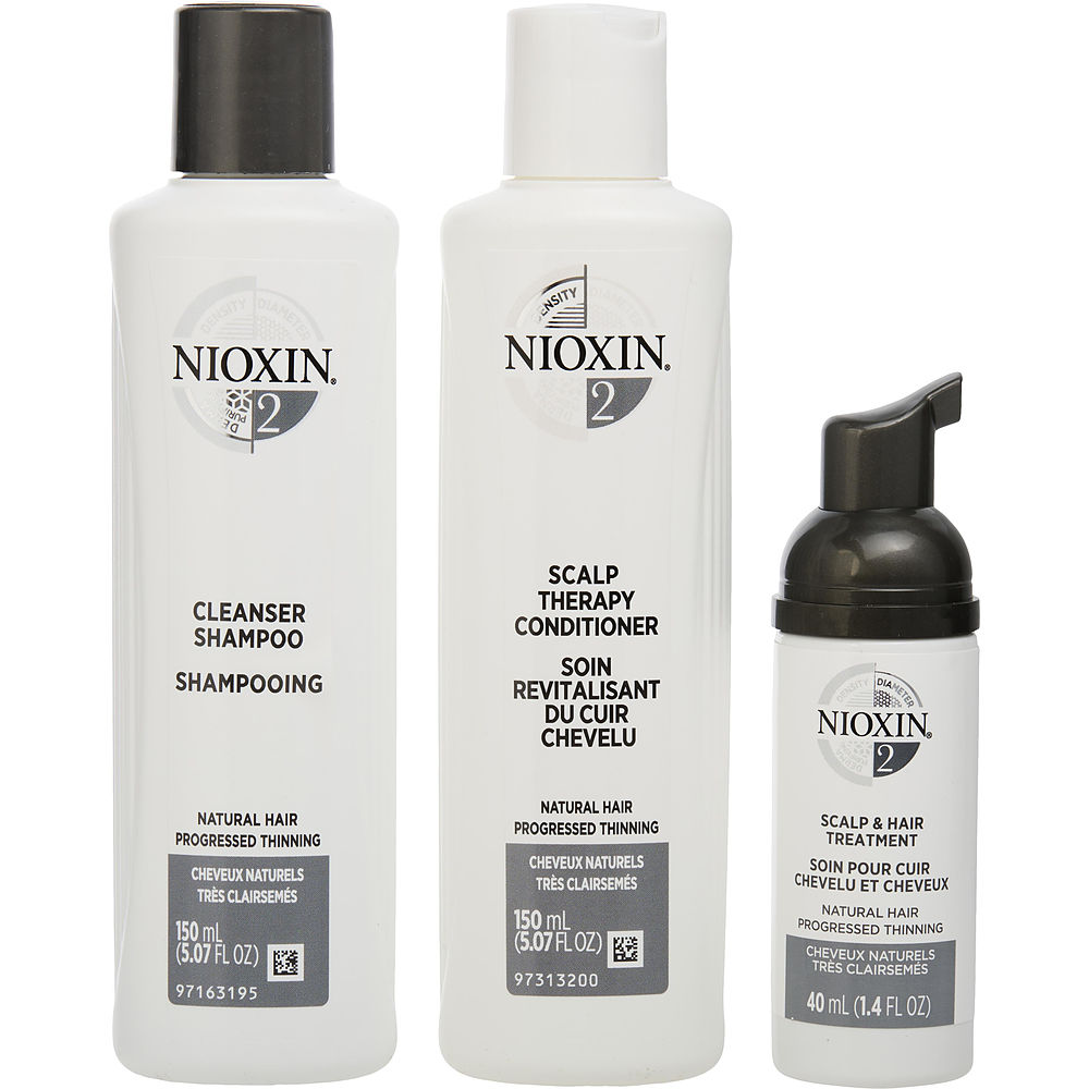 NIOXIN by Nioxin(SET-3 PIECE FULL KIT SYSTEM 2 WITH CLEANSER SHAMPOO 5 OZ & SCALP THERAPY CONDITIONER 5 OZ & SCALP TREATMENT 1.7 OZ) for UNISEX, produced with . NIOXIN by Nioxin was introduced in .